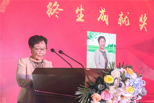 會(huì )上給任桂芳董事長(cháng)頒發(fā)了“終生成就獎”,任桂芳董事長(cháng)在大會(huì )上致辭。