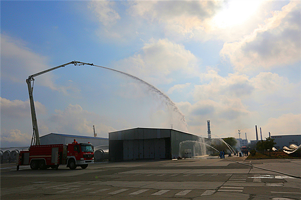 本次演練模擬連云港工廠(chǎng)10#油漆車(chē)間因電器隱患發(fā)生火災,導致大量物資和人員被困。9點(diǎn)50分,各參演隊伍集結完畢準備演練。10點(diǎn)整,通訊組接報警、報告火情,第一時(shí)間啟動(dòng)消防應急預案,向119報警后開(kāi)展初期火災滅火、人員疏散、救護、物資轉移、警戒、切斷廠(chǎng)區雨水排口等搶險工作,葉片生產(chǎn)部機修電工切斷火災現場(chǎng)電源、對儲氣罐進(jìn)行人工卸壓防范爆炸,消防泵房啟動(dòng)加壓水泵。隨著(zhù)火情不斷擴大,模擬的相鄰油漆車(chē)間發(fā)生著(zhù)火,向110、120報警后繼續組織滅火。10點(diǎn)15分,接警后開(kāi)發(fā)區消防救援隊三輛消防車(chē)入廠(chǎng)開(kāi)展滅火救援,期間,通訊組向消防救援隊報告車(chē)間可能還有人員,救援隊使用專(zhuān)用工具強行破拆變形大門(mén),對車(chē)間內部迅速開(kāi)展搜救,并將被困人員救出。10點(diǎn)20分,火災得到控制并完全滅火,總指揮指示清點(diǎn)人員、盤(pán)點(diǎn)物資、檢查損失、檢查消防尾水等工作。