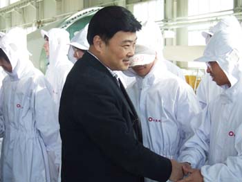 2007年2月15日,中共連云港市委書(shū)記王建華、市委副書(shū)記、宣傳部長(cháng)仲琨、市委常委、市委秘書(shū)長(cháng)張光東、副市長(cháng)施炎等市委、市政府領(lǐng)導來(lái)中復連眾看望慰問(wèn)一線(xiàn)干部職工,帶來(lái)了節日的慰問(wèn)和祝福。