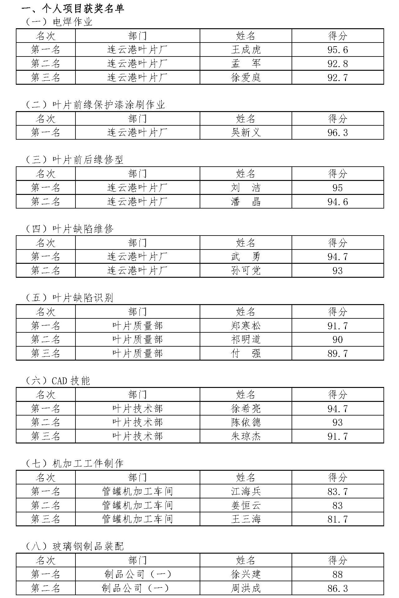 近年來(lái),公司工會(huì )圍繞中心、服務(wù)大局,不斷完善競賽活動(dòng)方案,不斷健全競賽活動(dòng)激勵機制,持續激發(fā)員工比學(xué)趕幫超熱情,賽出水平,賽出風(fēng)格。本次技能競賽于8月28日啟動(dòng),9月30日全面完成,共設14個(gè)比賽項目,其中4個(gè)集體項目、10個(gè)個(gè)人項目,來(lái)自葉片事業(yè)部、管罐事業(yè)部411名員工同臺競技,人數創(chuàng )近年來(lái)參賽職工之最,競賽過(guò)程氣氛緊張、精彩紛呈。